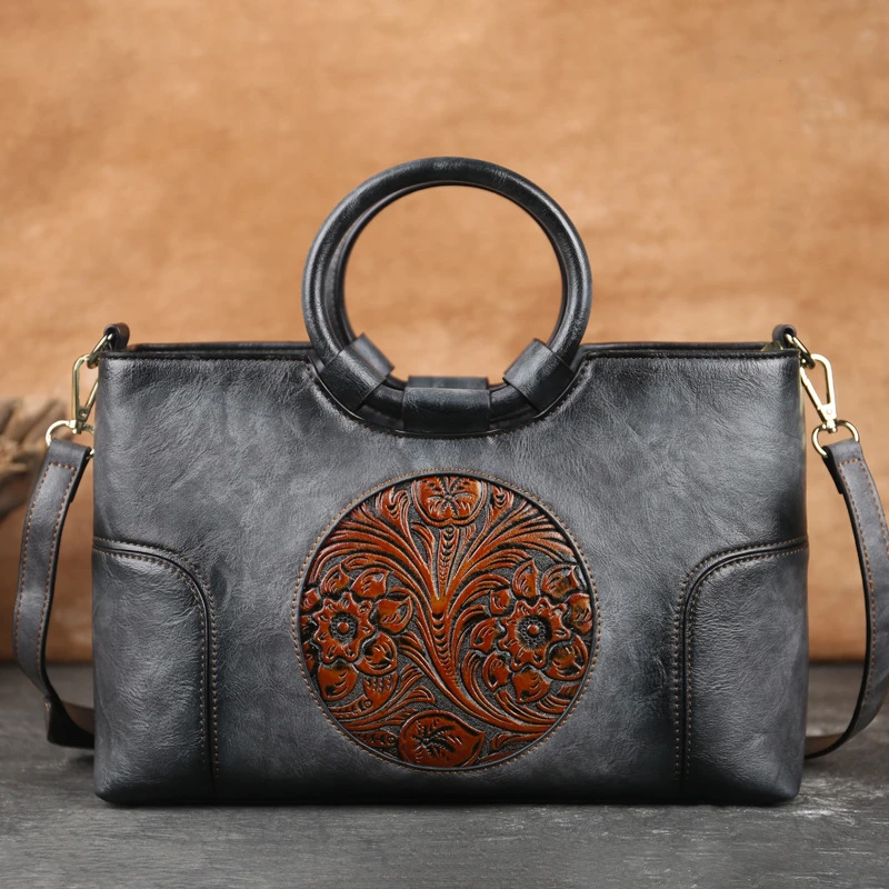 High Quality PU Leather Women Handbag Retro Embossed Large Capacity Female Shoulder Messenger Bag Brown Black Red Green Grey m58