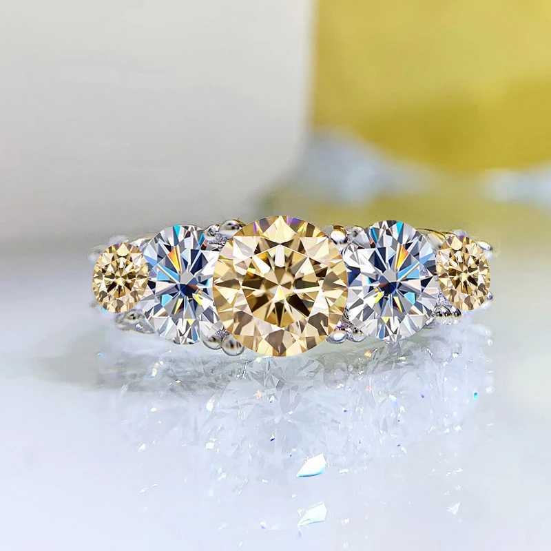 Classic 18k Plated 3.6CT All Moissanite Rings For Women 5 Stones Sparkling Diamond Wedding Band S925 Sterling Silver Jewelry GRA