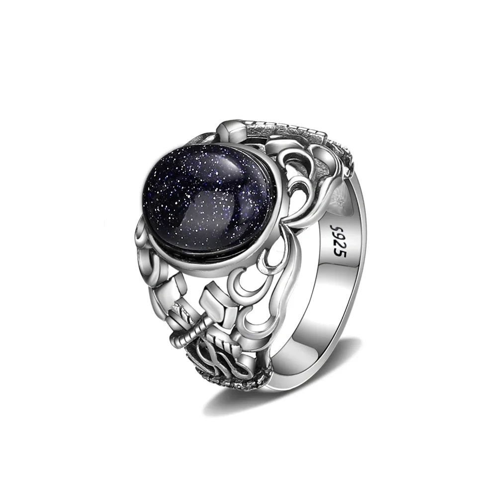 925 Sterling Silver Rings 10*12mm Natural Lapis Lazuli Labradorite Axe Hollow Design Jewelry for Women Turquoise Ring Gift