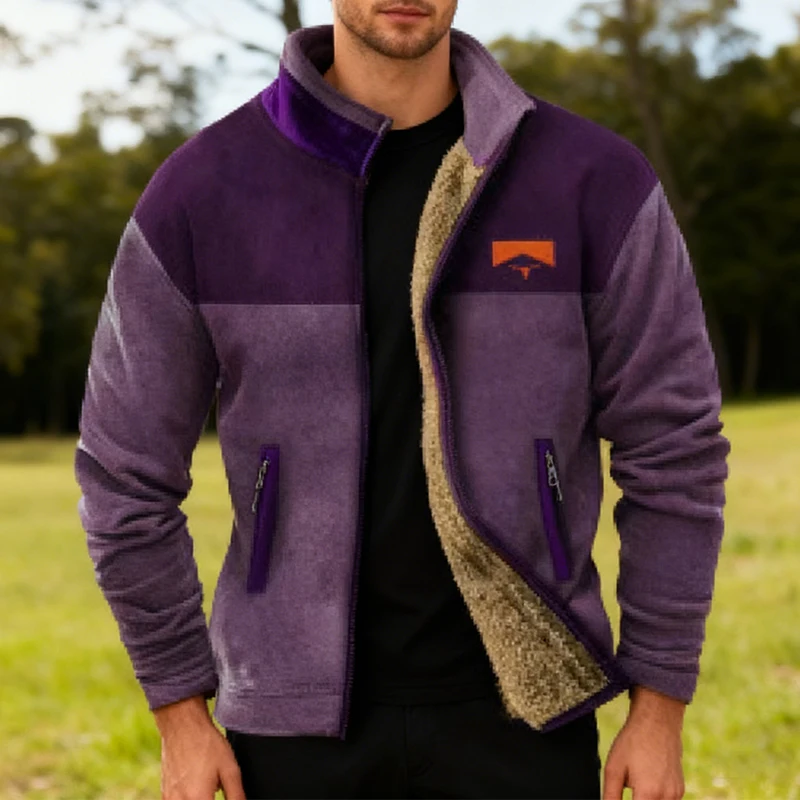 Vintage Stand Collar Fleece Lined Coats Men Retro Pattern Print Outerwear Fall Winter Stylish Mens Patchwork Jacket Coat For Man