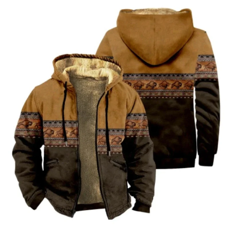 Vintage Winter Hooded Jackets for Men Thick Fleece Motorcycle Hoodies Casual Fit Zipper Jacket Male Versatile Hooded Sweatshirts